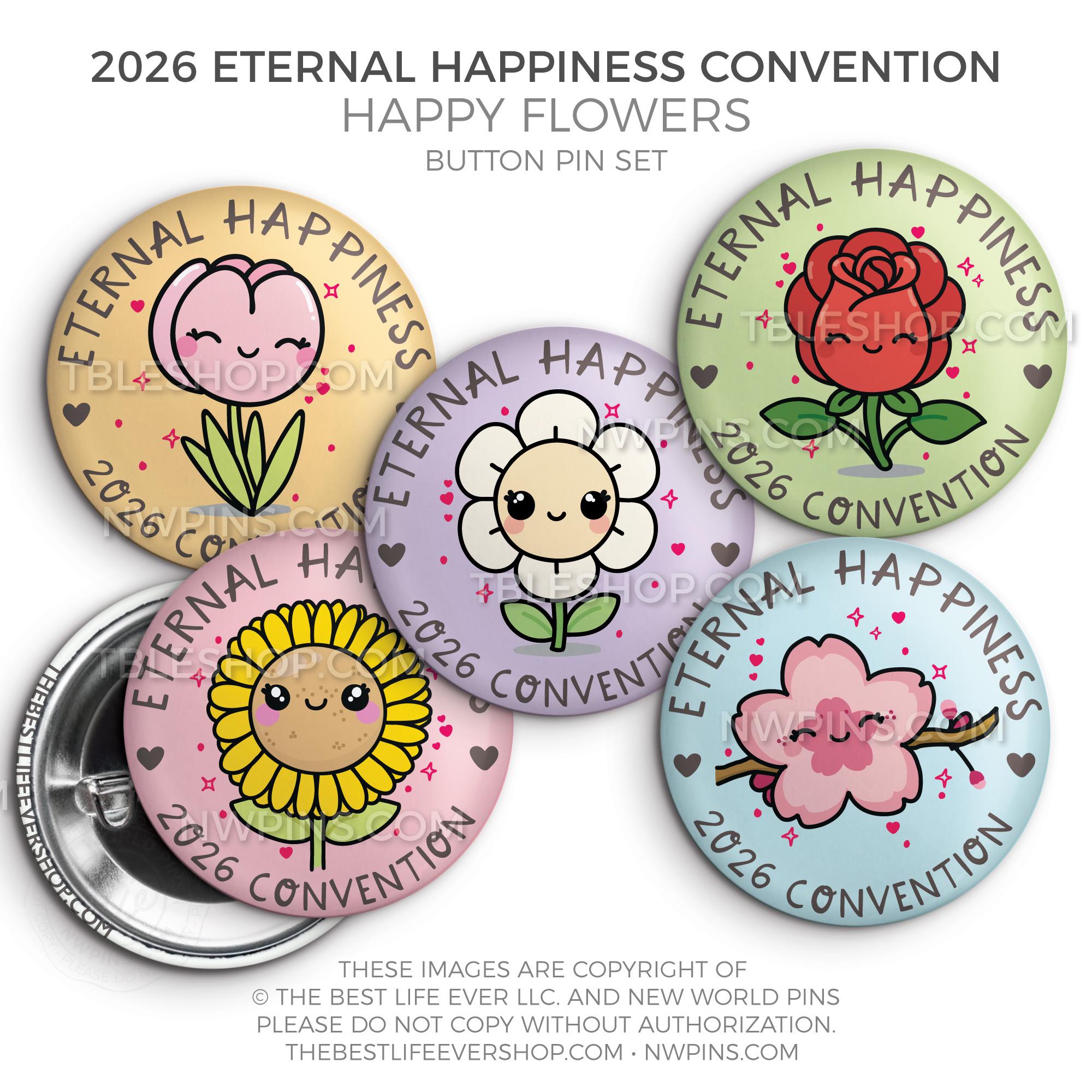 ❤︎ 2026 Convention Eternal Happiness Happy Flowers Button Pin Set ❤︎