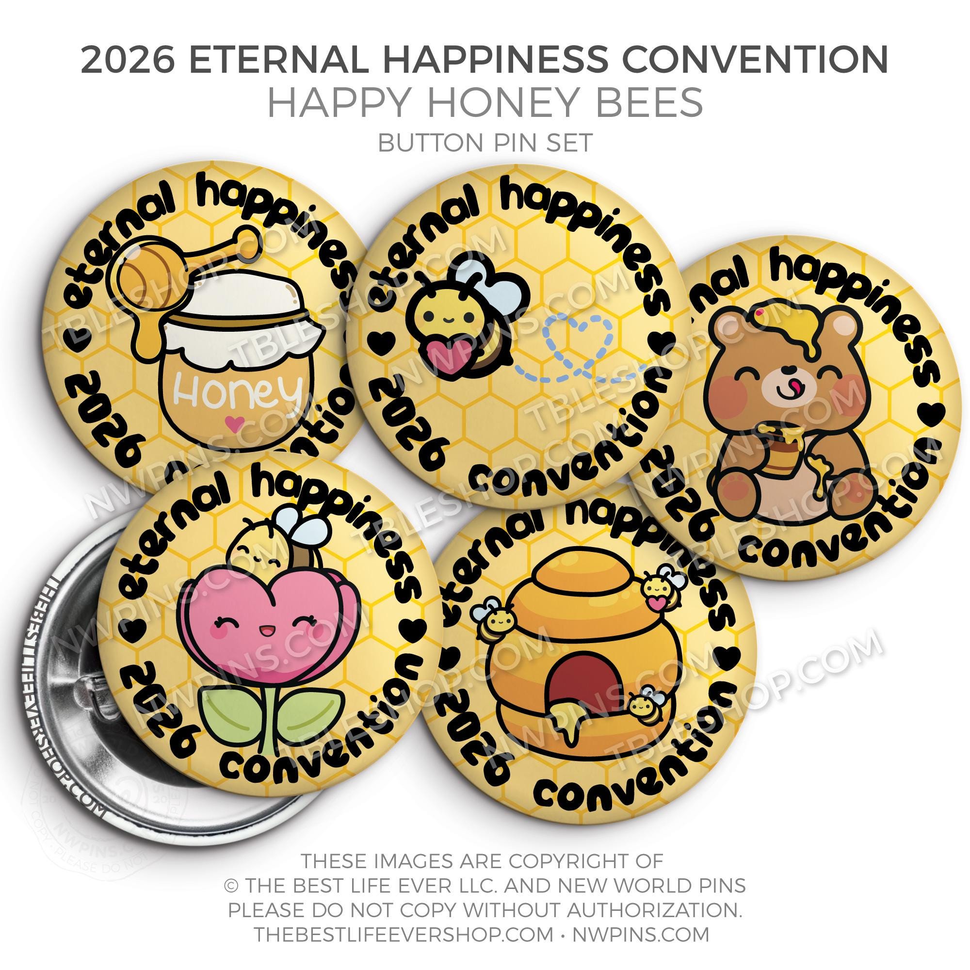 ❤︎ 2026 Convention Eternal Happiness Happy Honey Bees Button Pin Set ❤︎