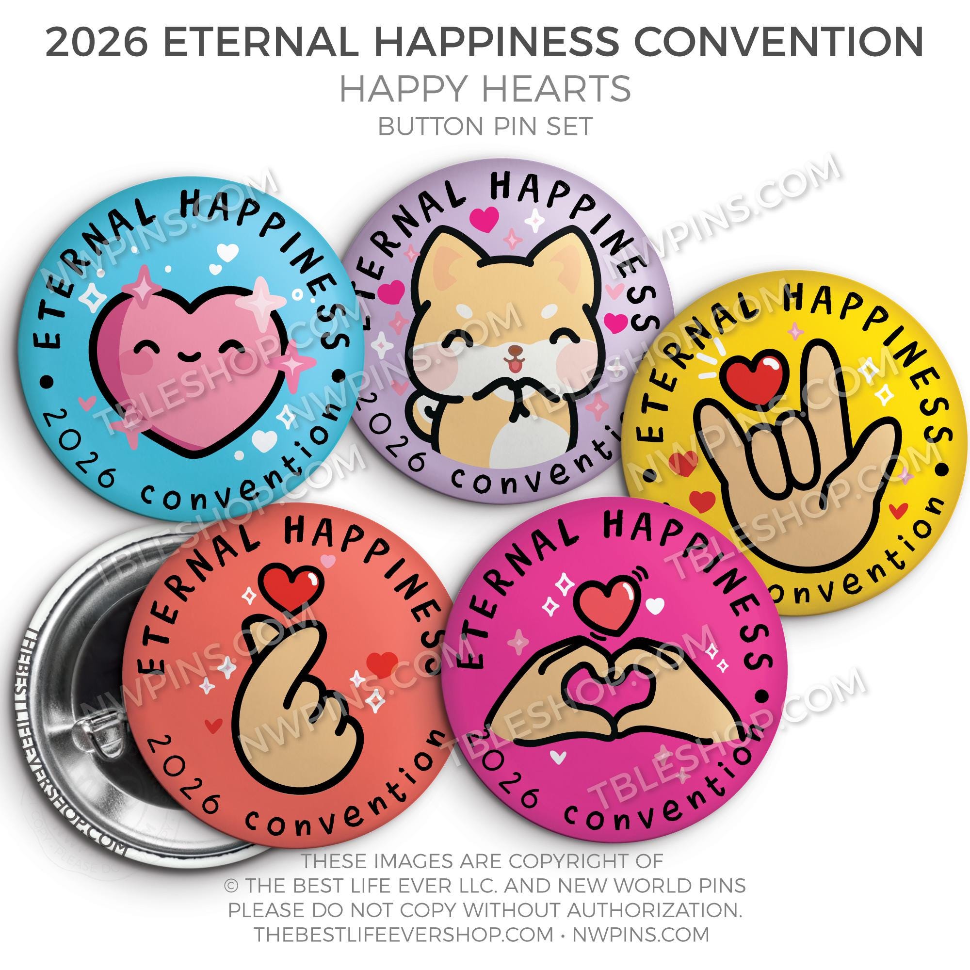 ❤︎ 2026 Convention Eternal Happiness Happy Hearts Button Pin Set ❤︎