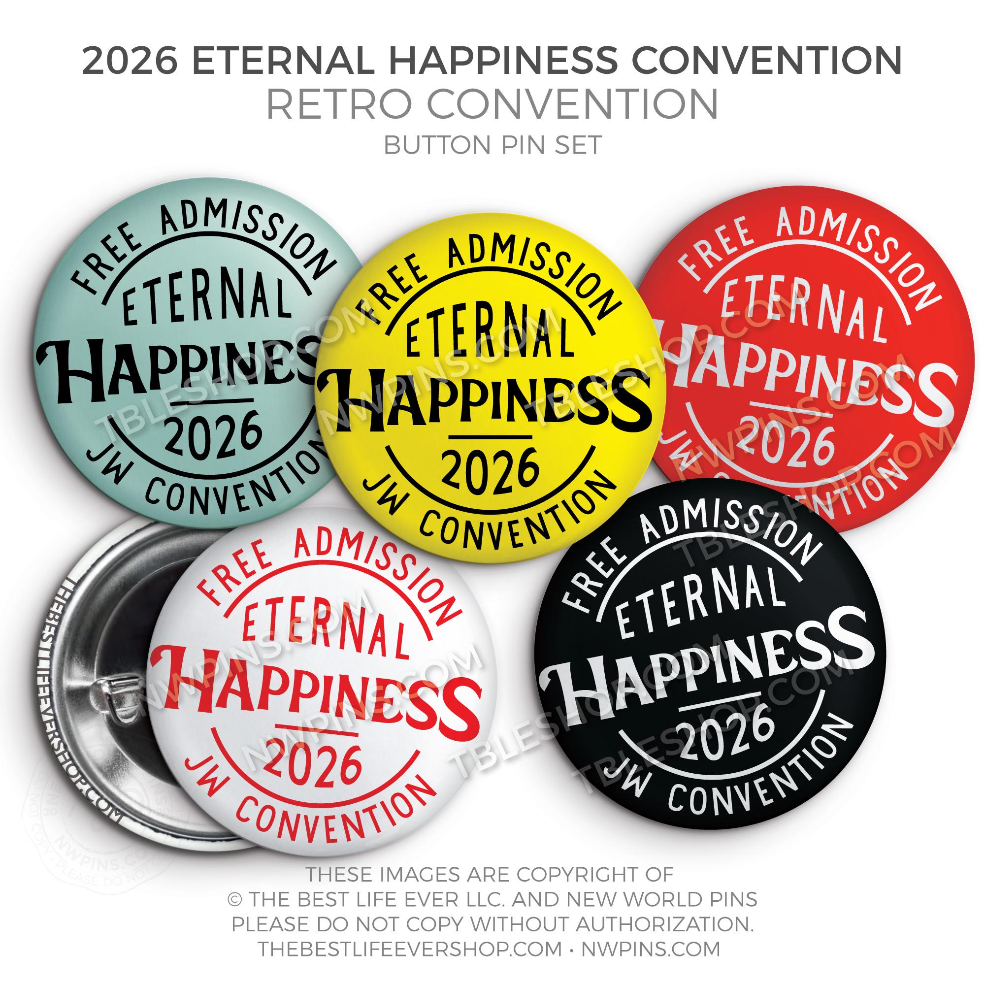 ❤︎ 2026 Convention Eternal Happiness Retro Convention Admission Button Pin Set ❤︎