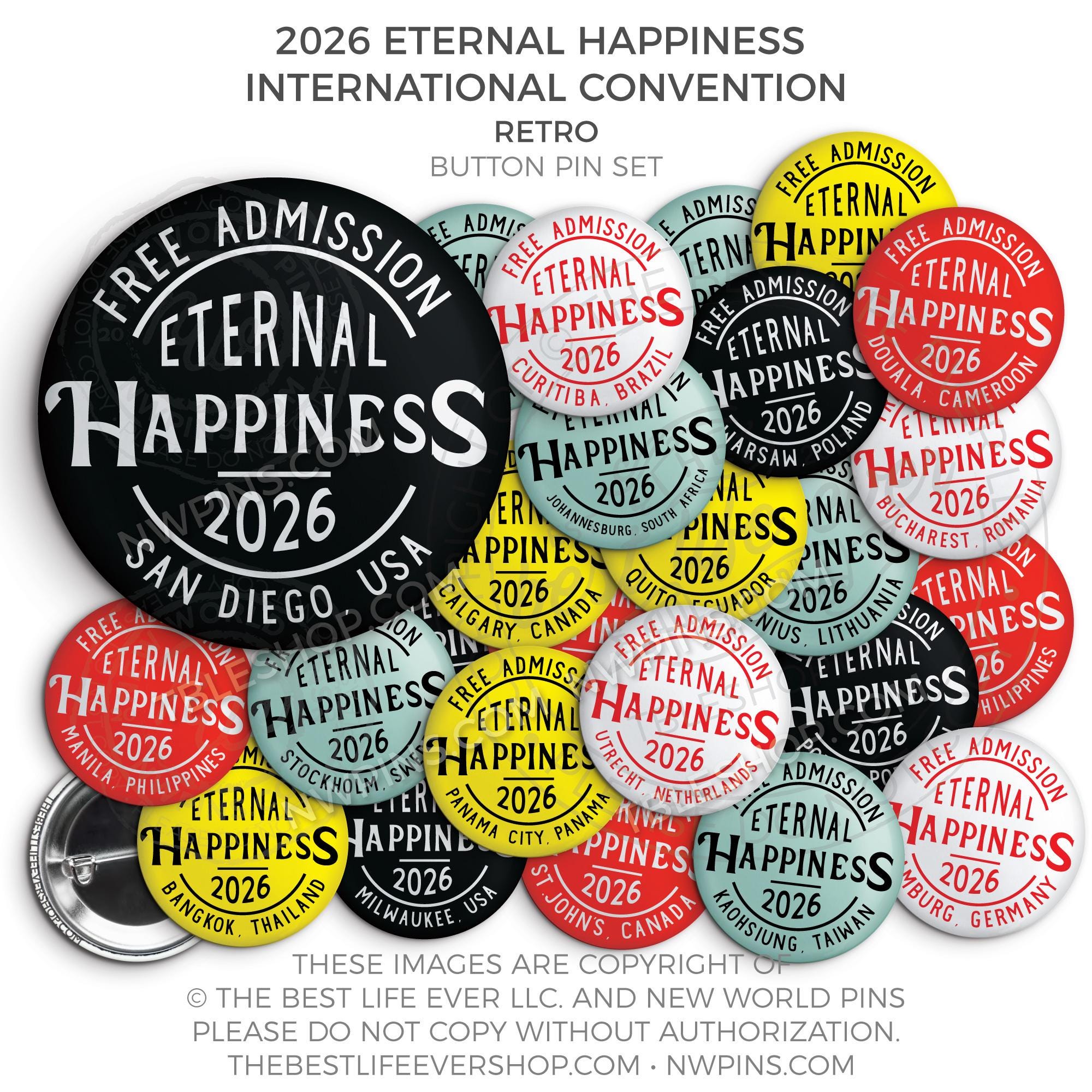 ❤︎ 2026 Convention Eternal Happiness RETRO Button Pin Set ❤︎