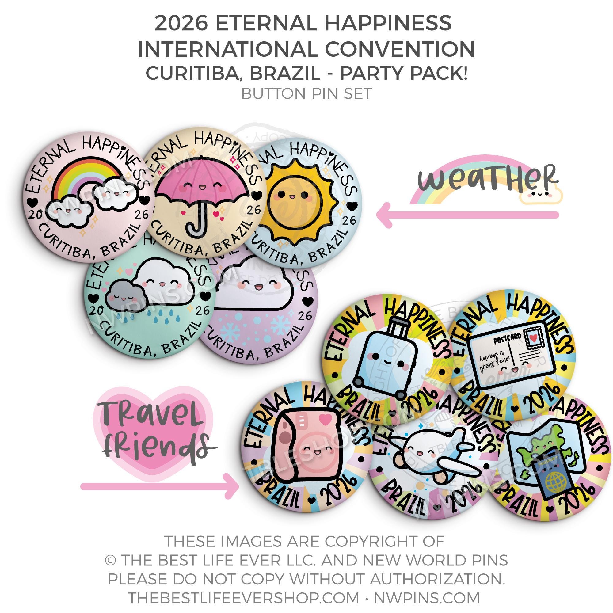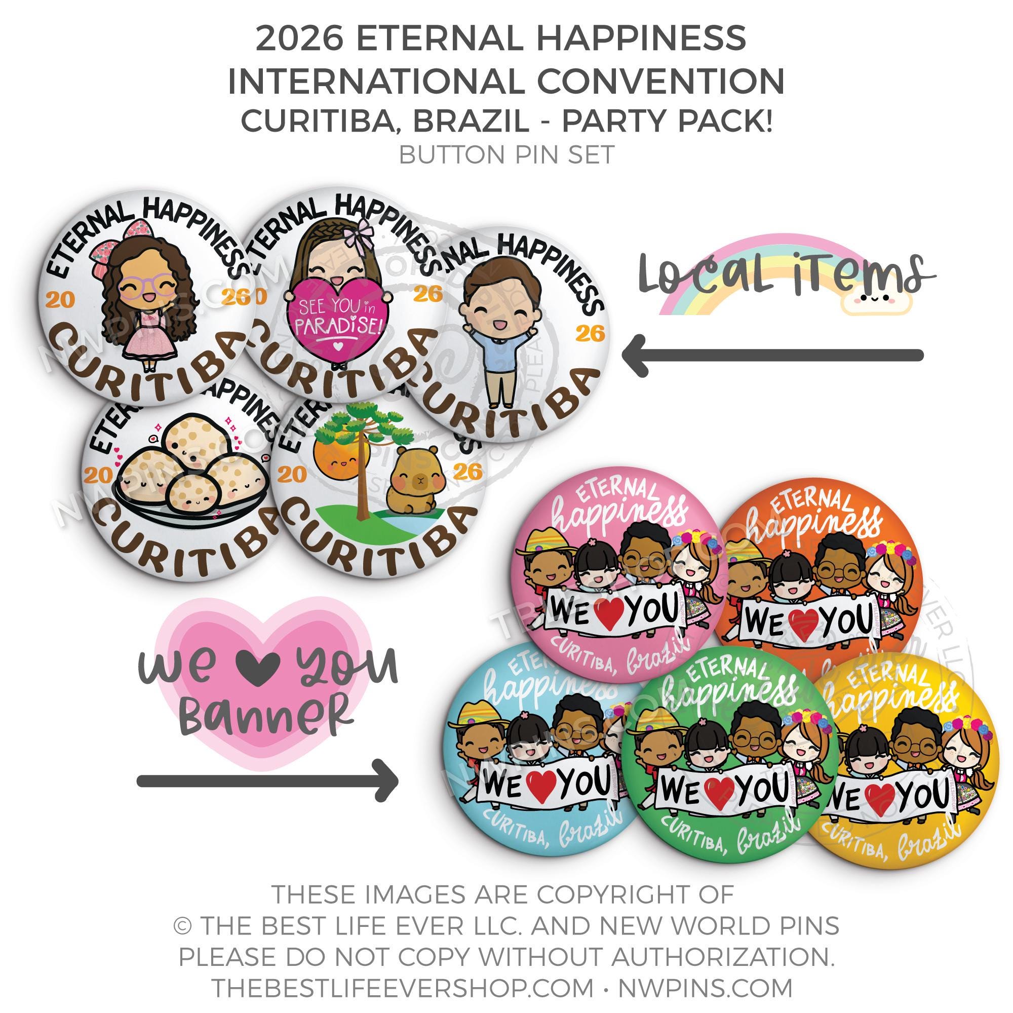 ❤︎ 2026 International Convention Eternal Happiness BRAZIL PARTY PACK Button Pin Set ❤︎