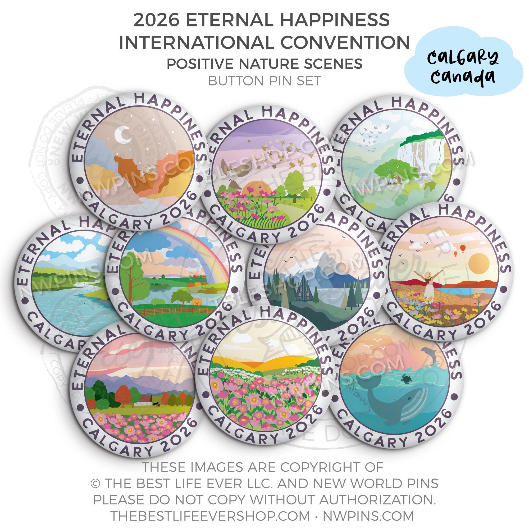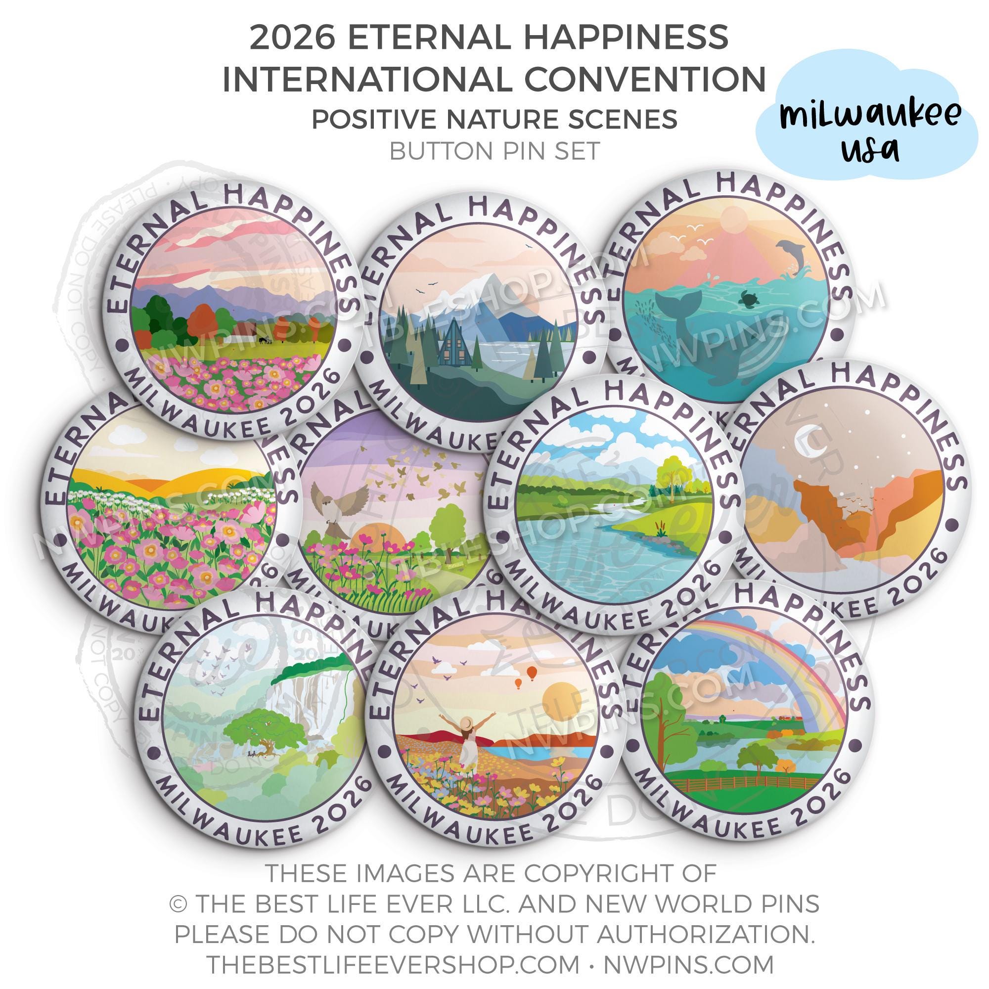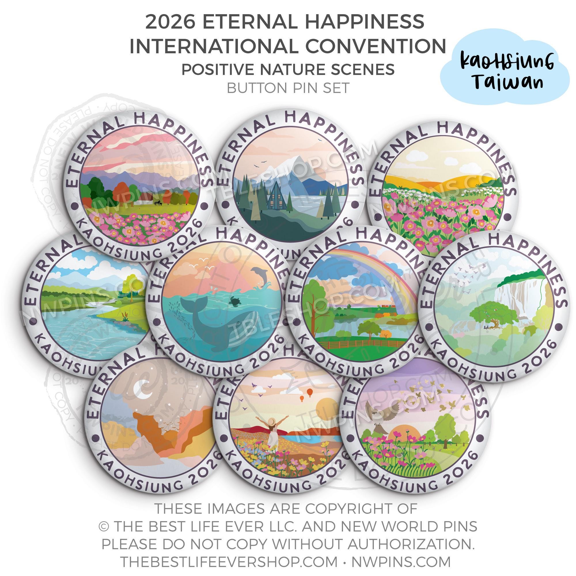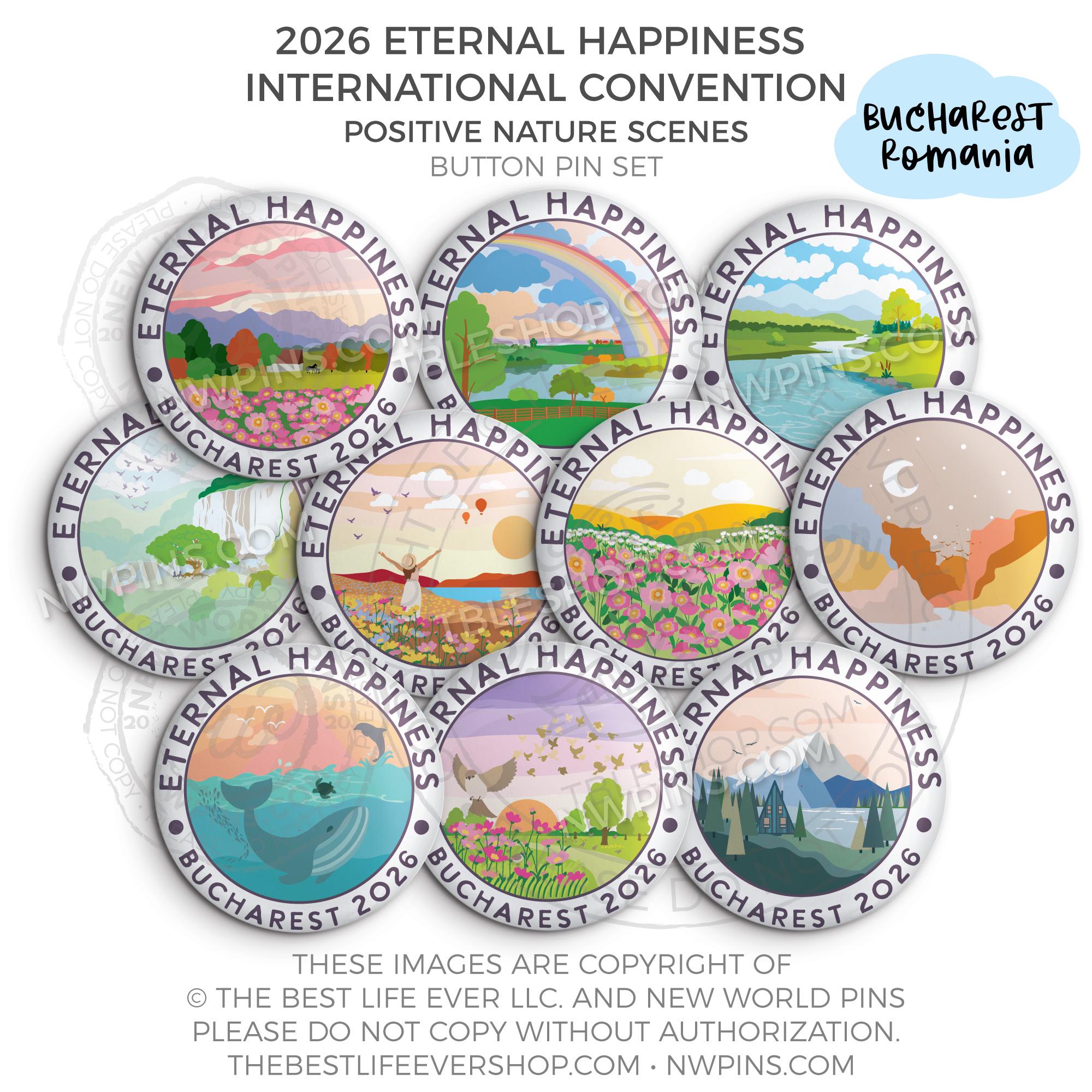 ❤︎ 2026 Convention Eternal Happiness Nature Scenes Button Pin Set ❤︎