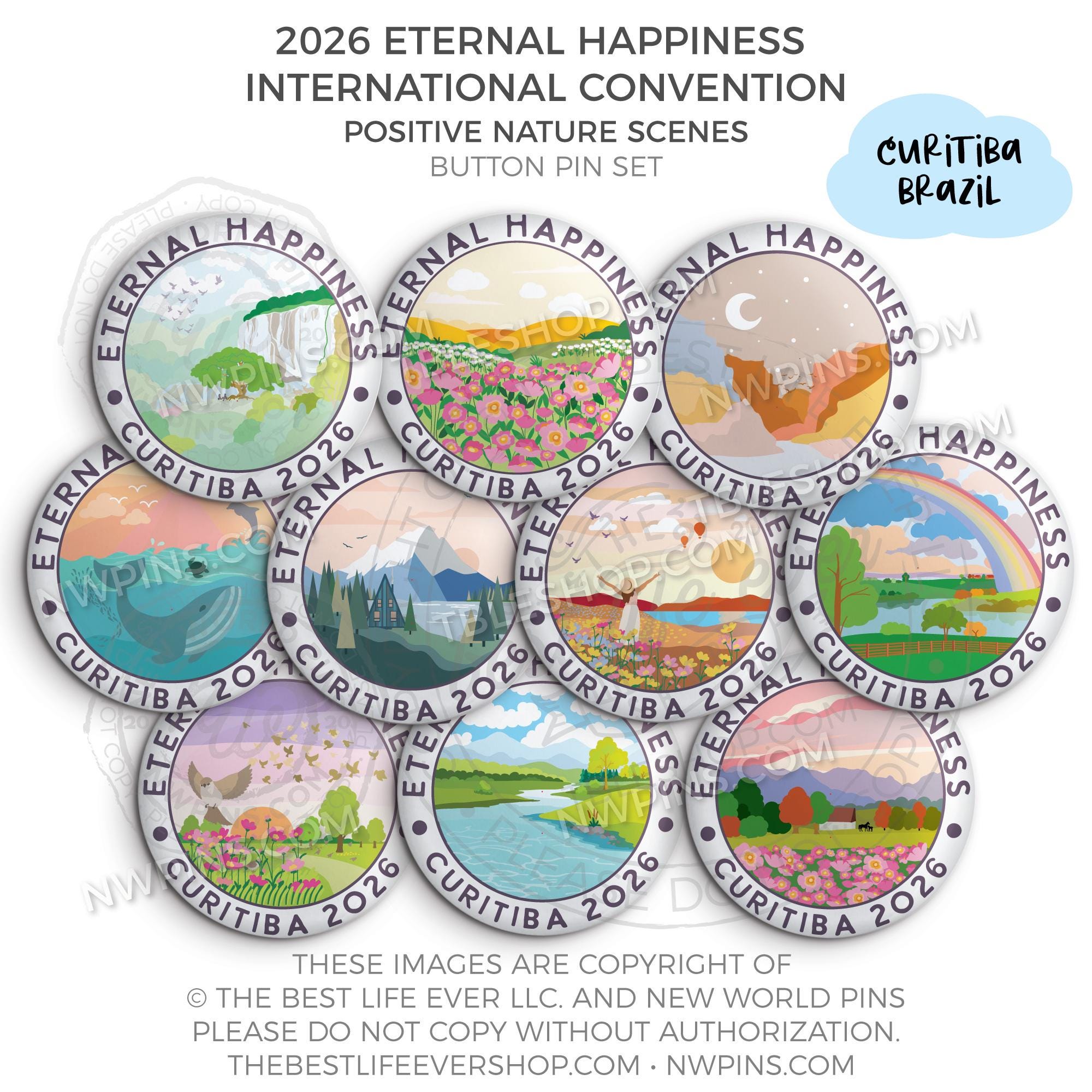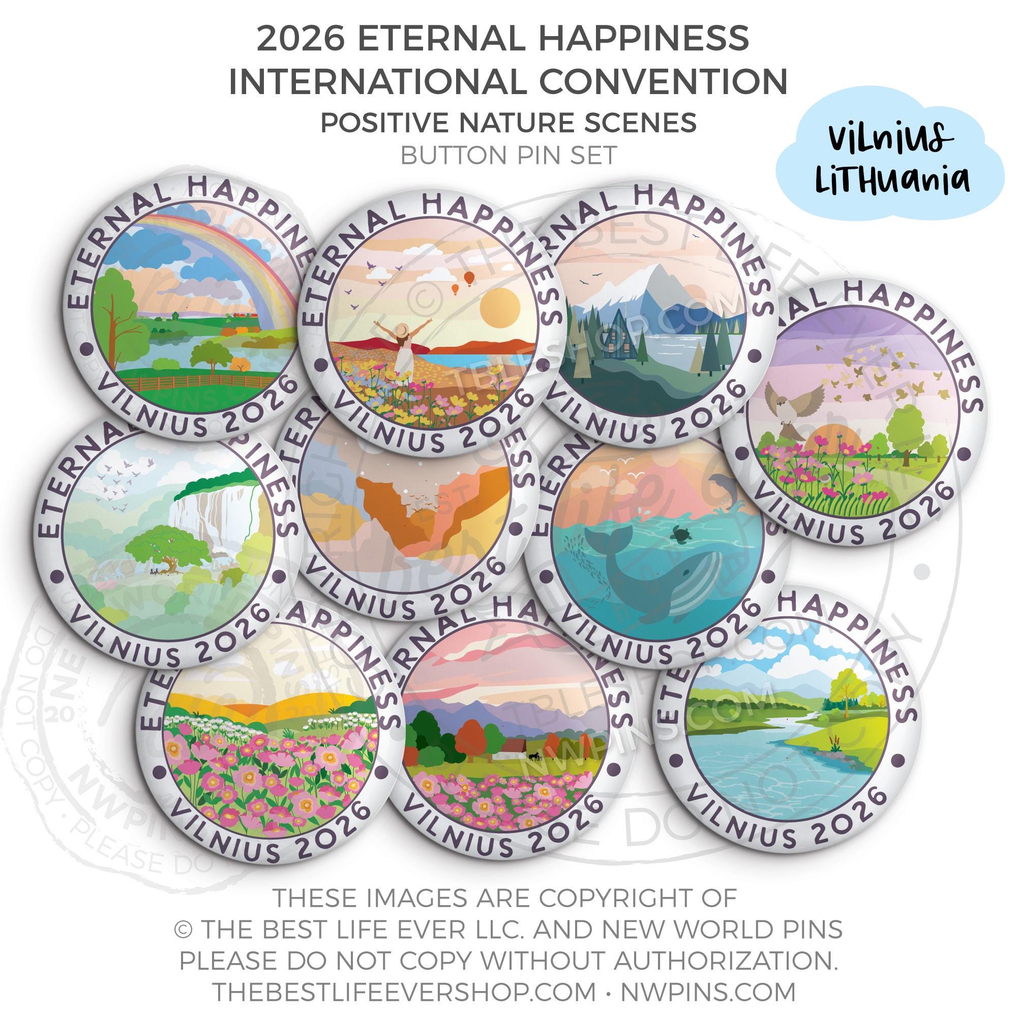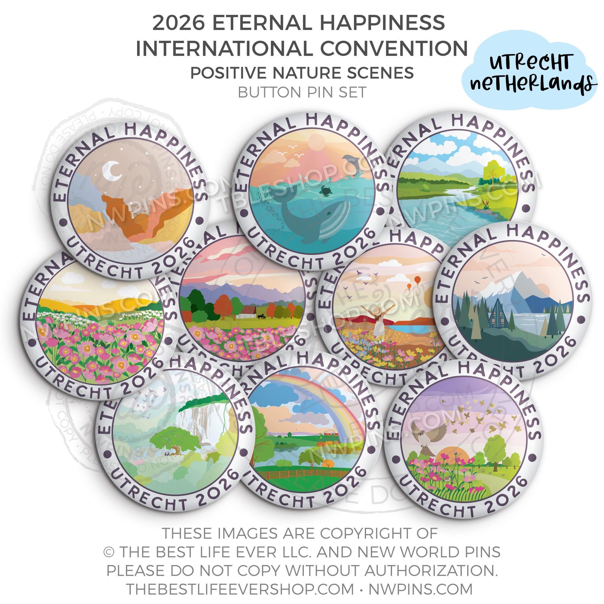 ❤︎ 2026 Convention Eternal Happiness Nature Scenes Button Pin Set ❤︎
