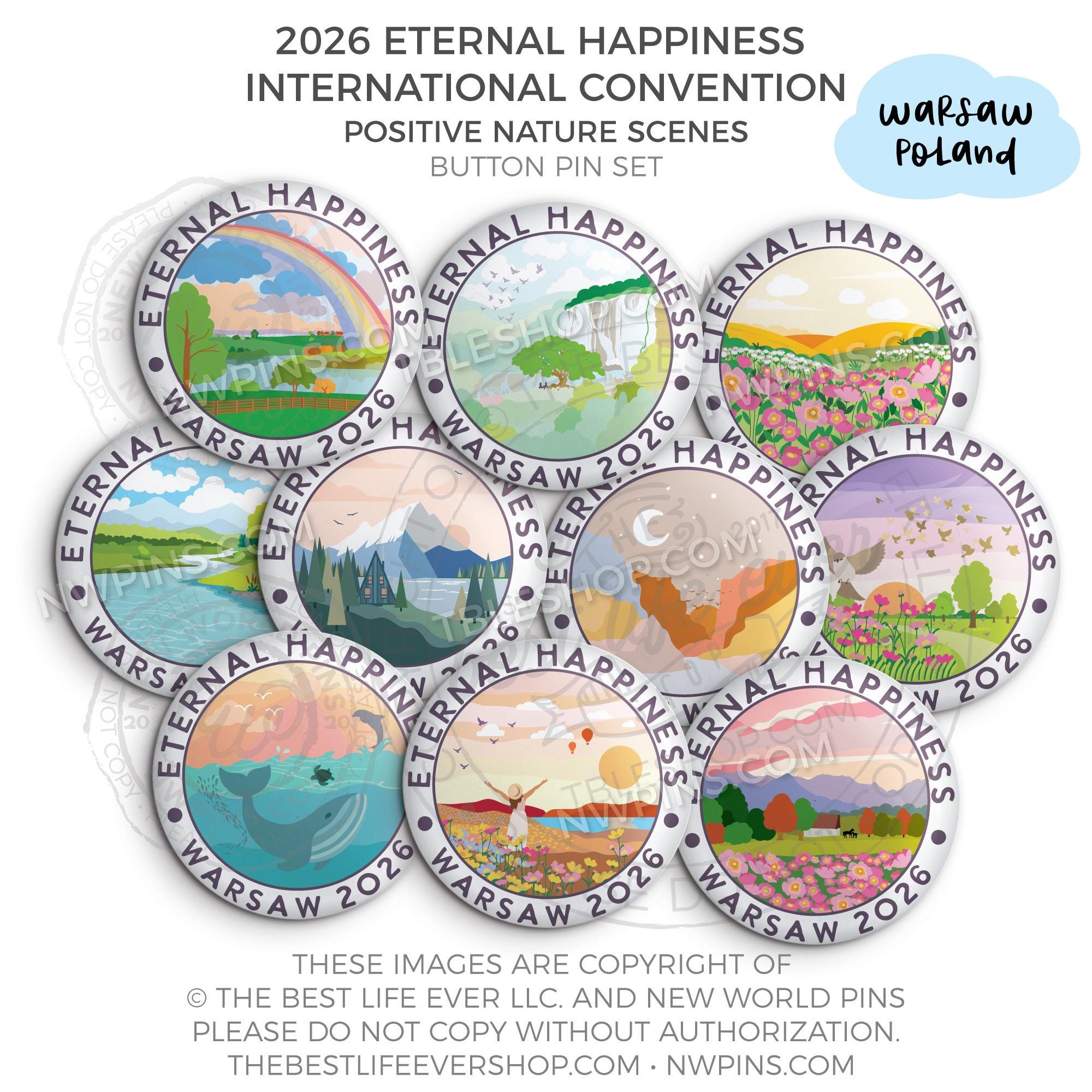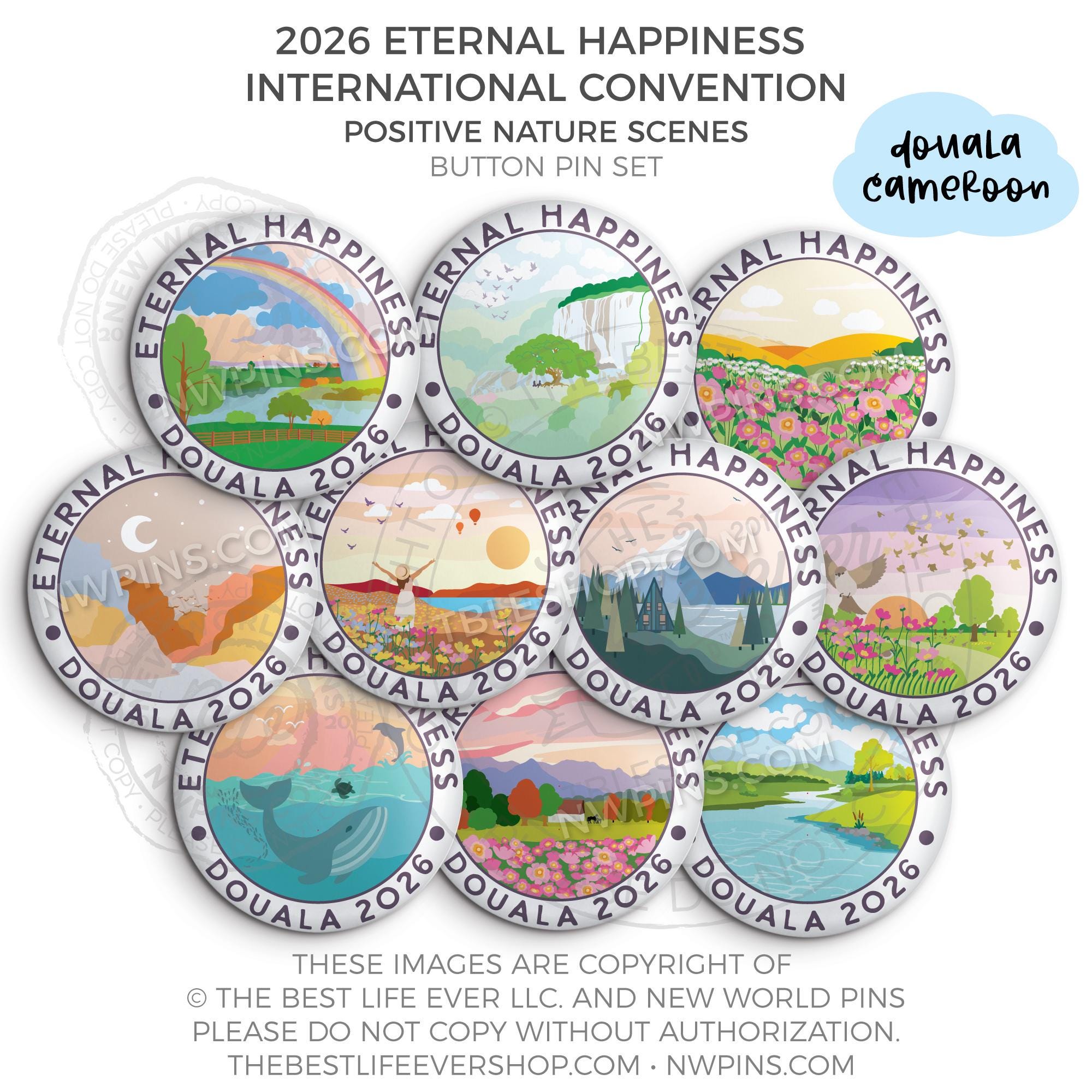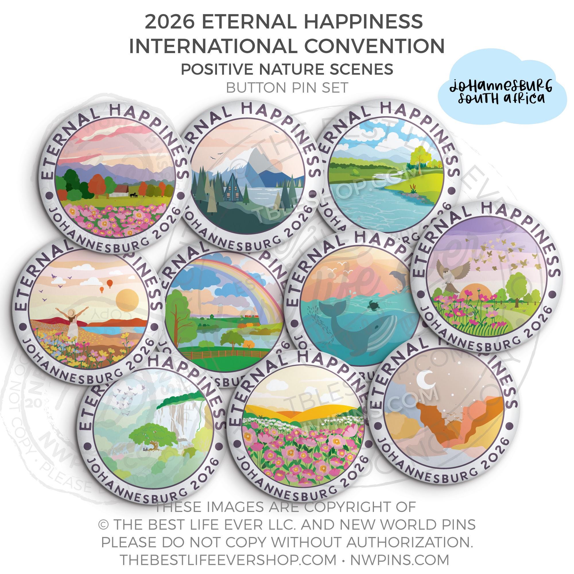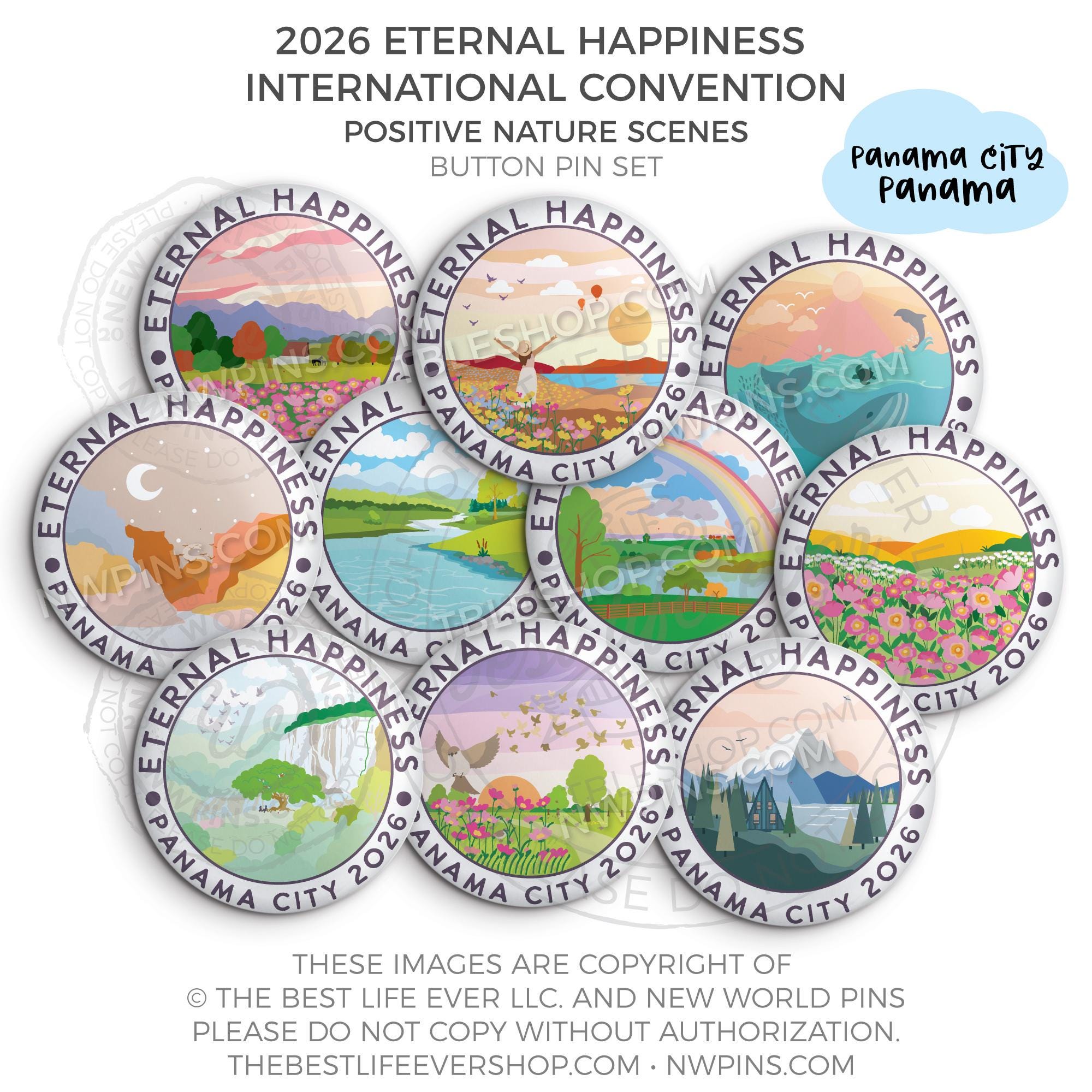 ❤︎ 2026 Convention Eternal Happiness Nature Scenes Button Pin Set ❤︎