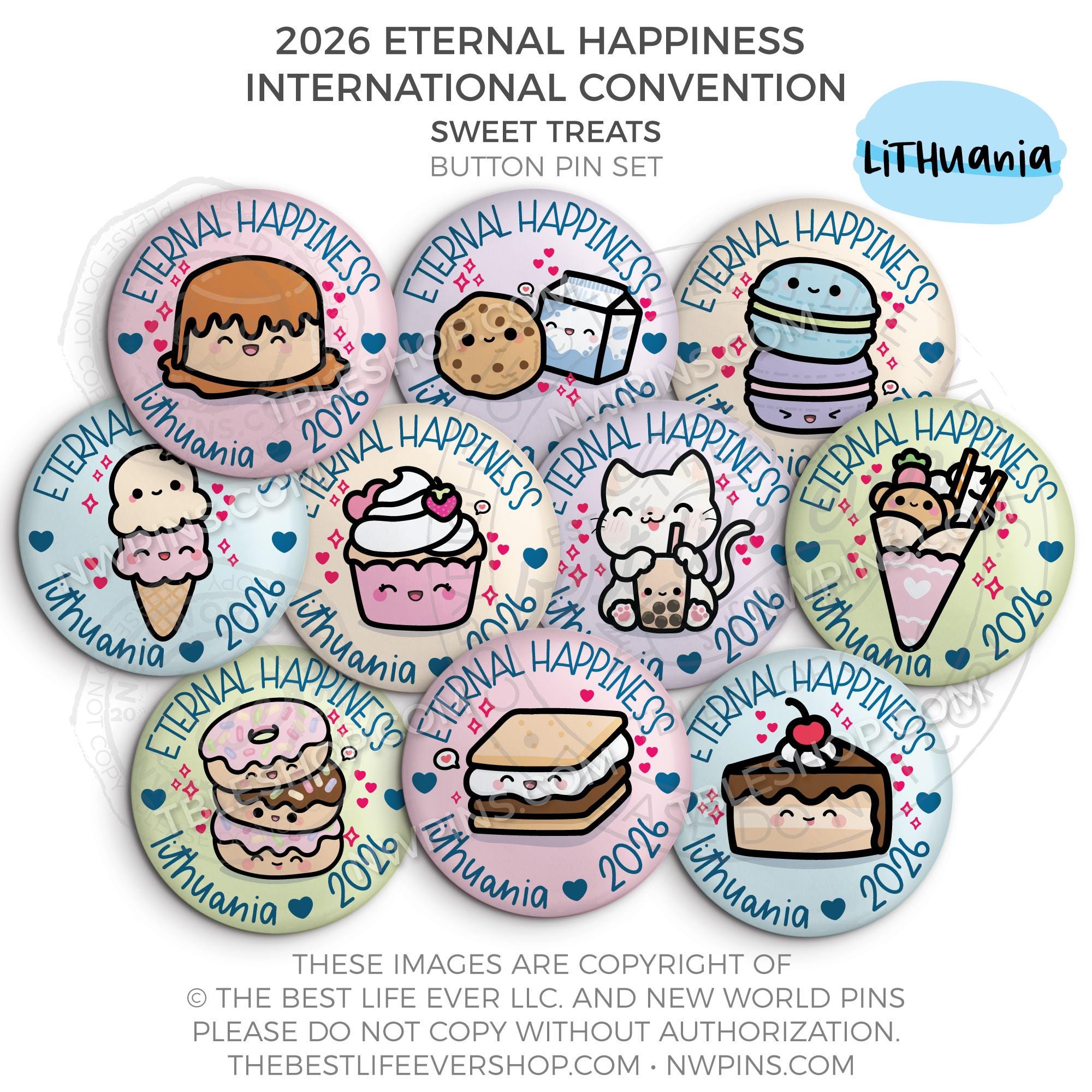 ❤︎ 2026 Convention Eternal Happiness Sweet Treats Button Pin Set ❤︎