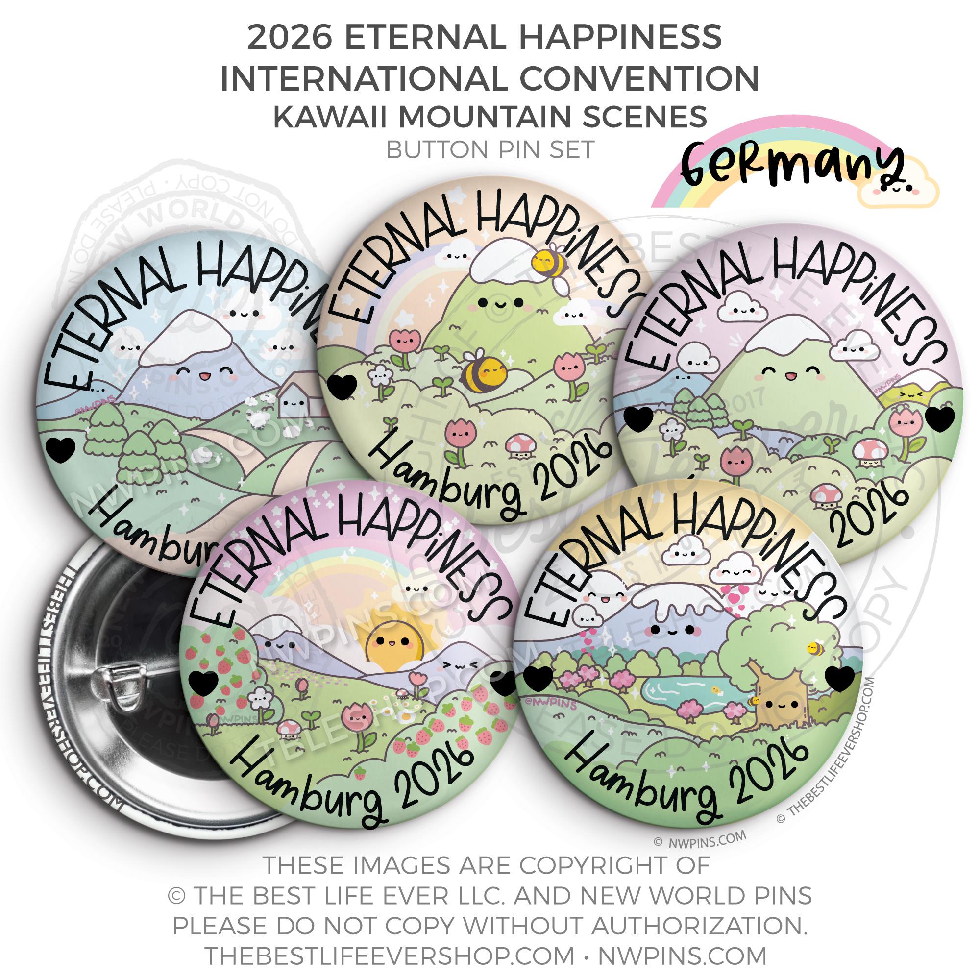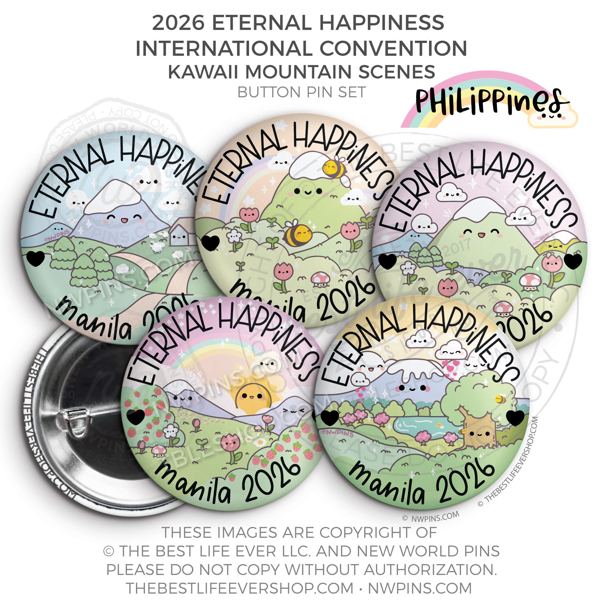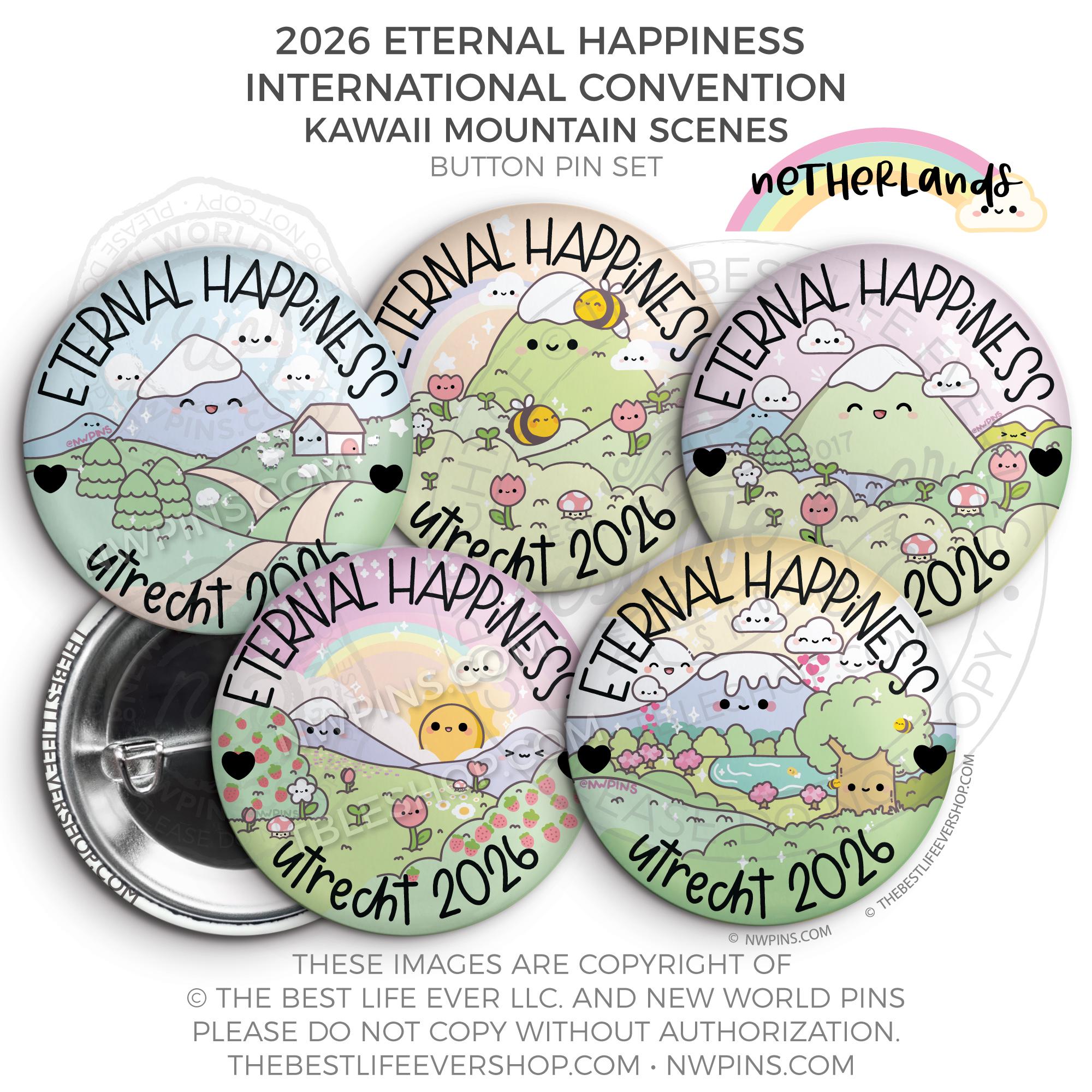 ❤︎ 2026 Convention Eternal Happiness Happy Kawaii Mountain Scenes Button Pin Set ❤︎