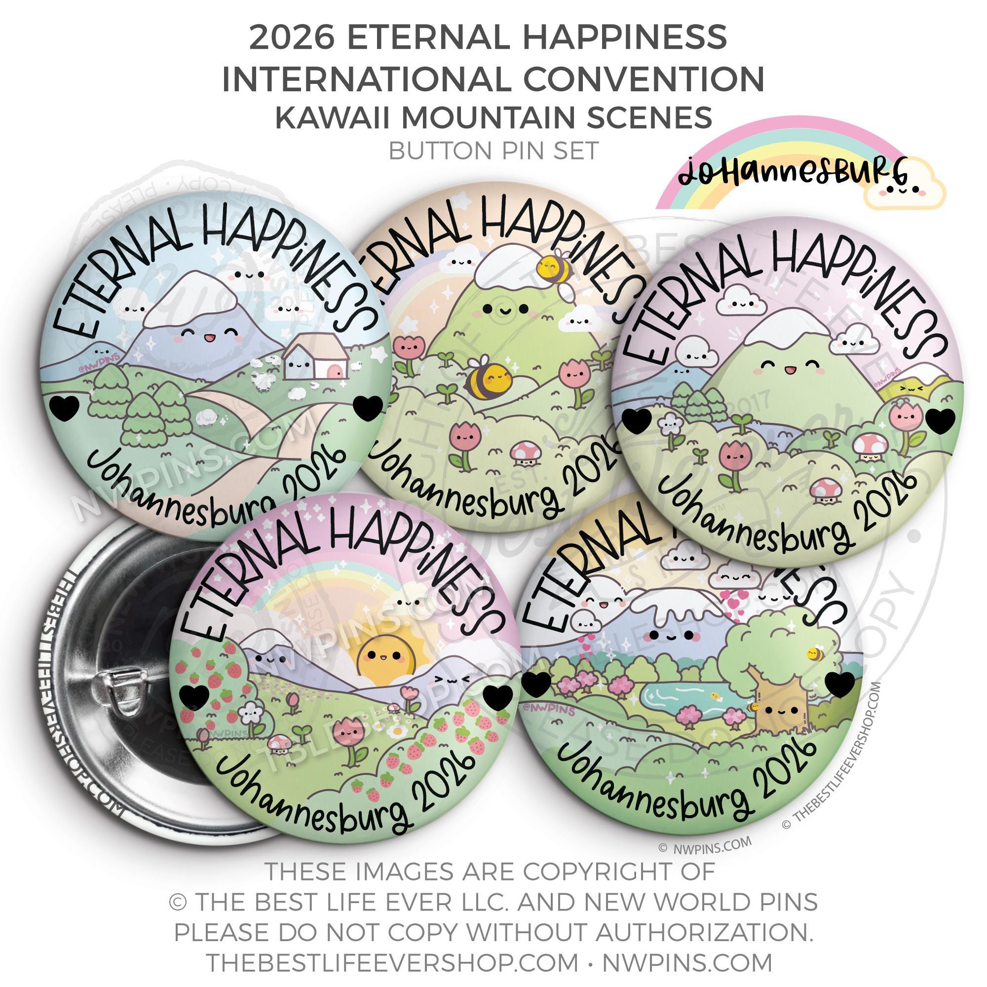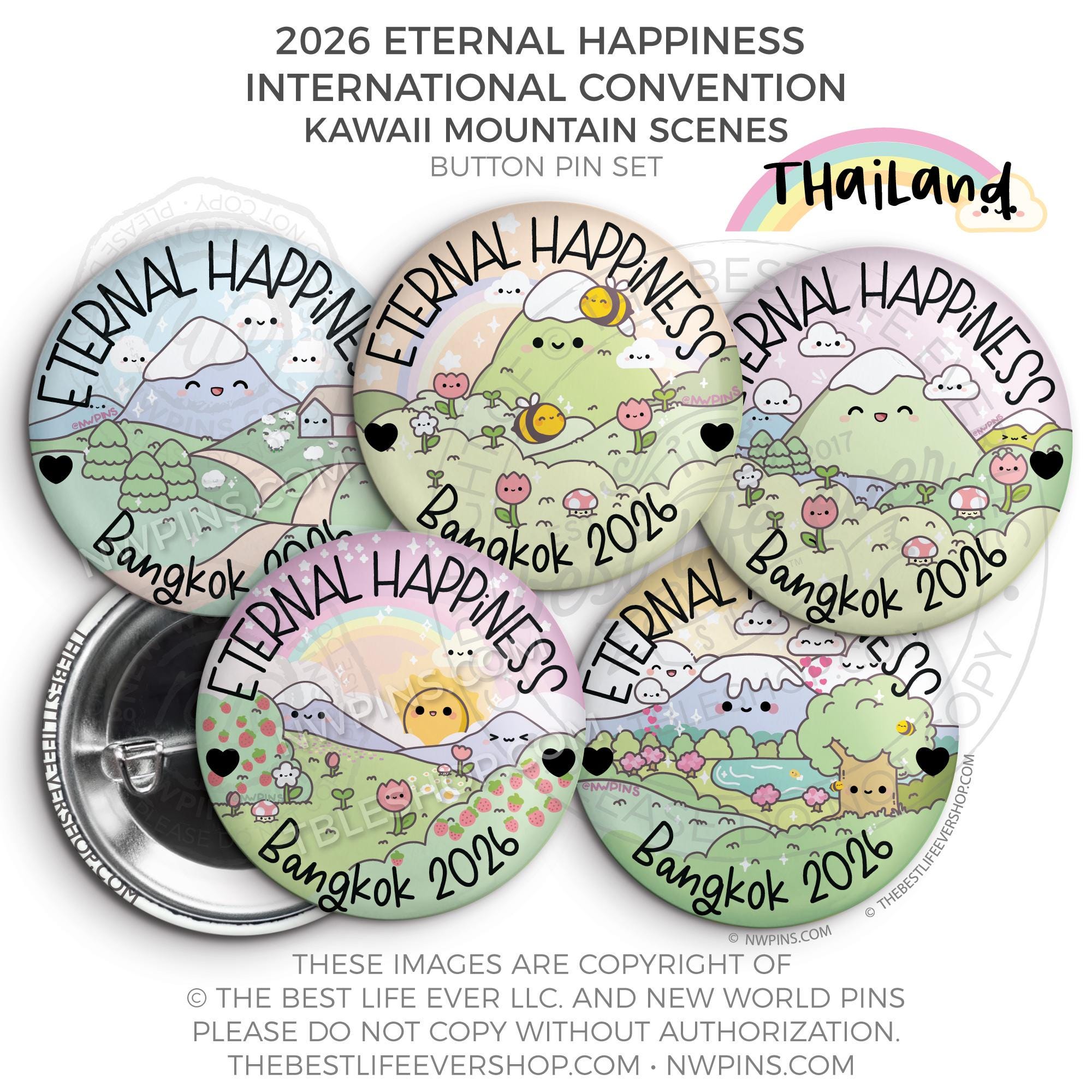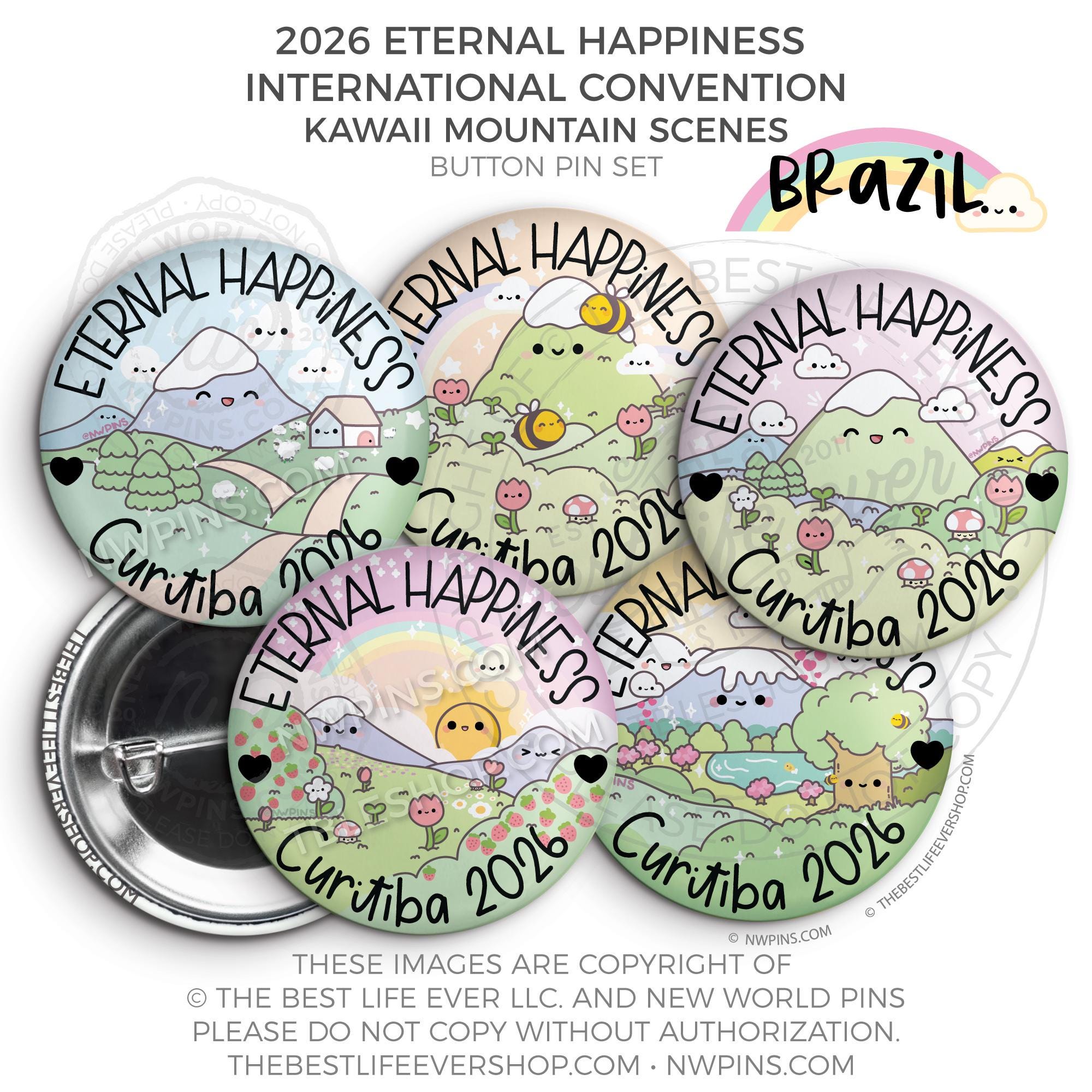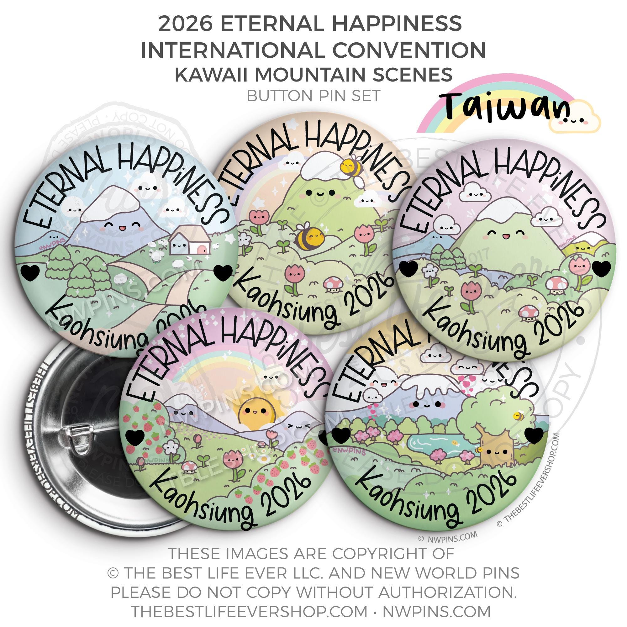 ❤︎ 2026 Convention Eternal Happiness Happy Kawaii Mountain Scenes Button Pin Set ❤︎