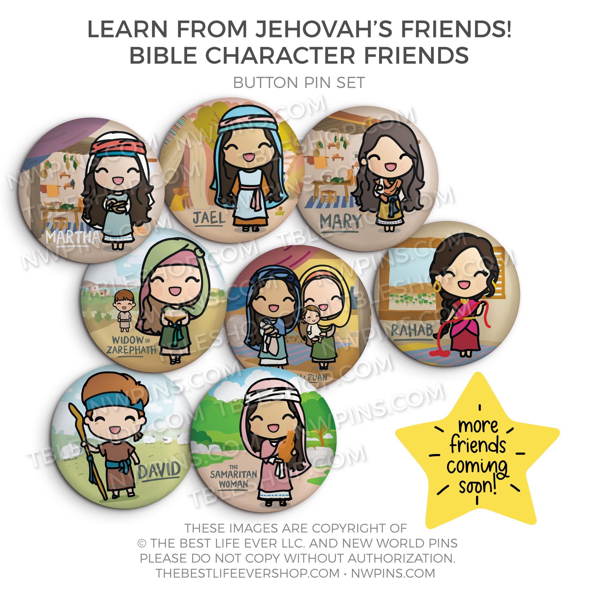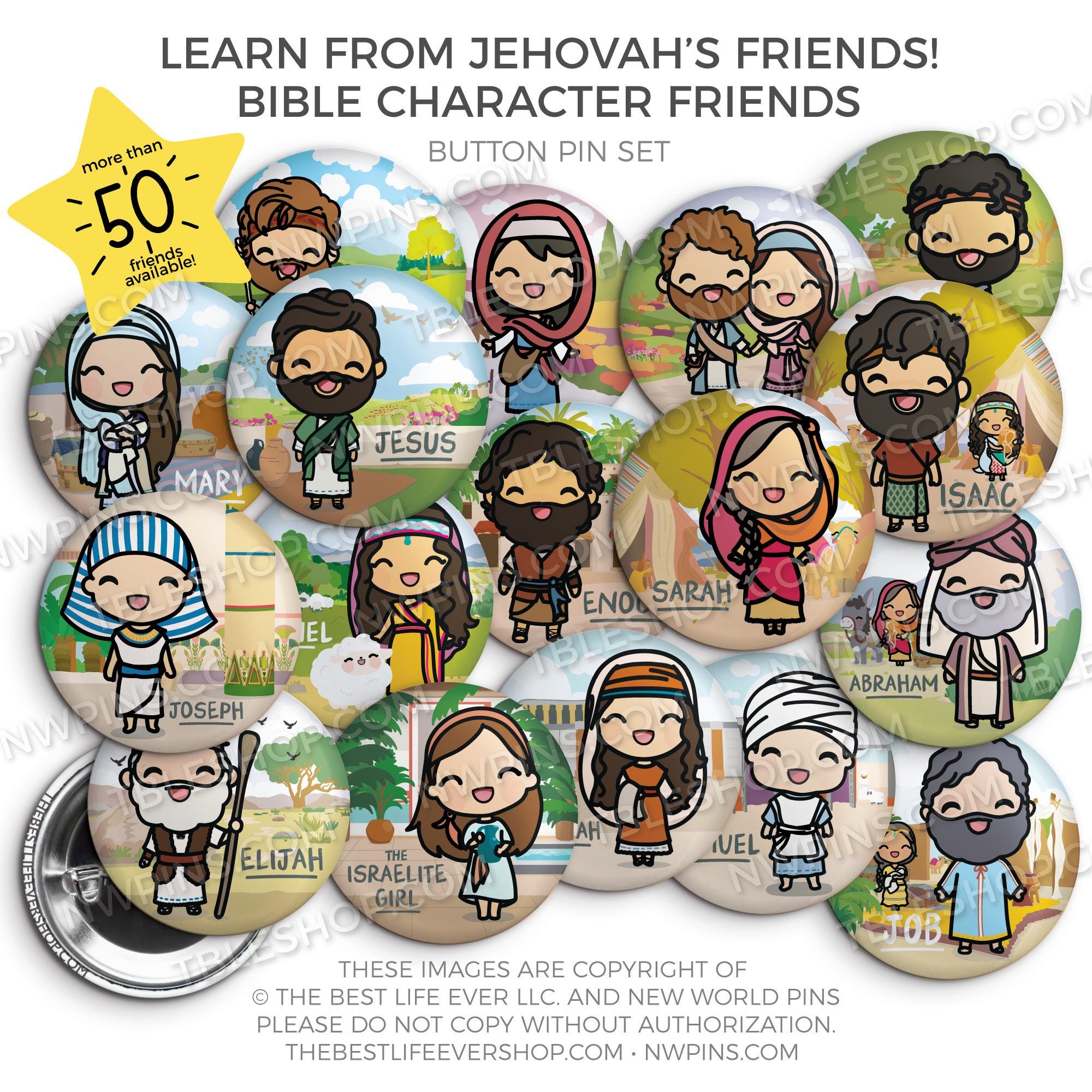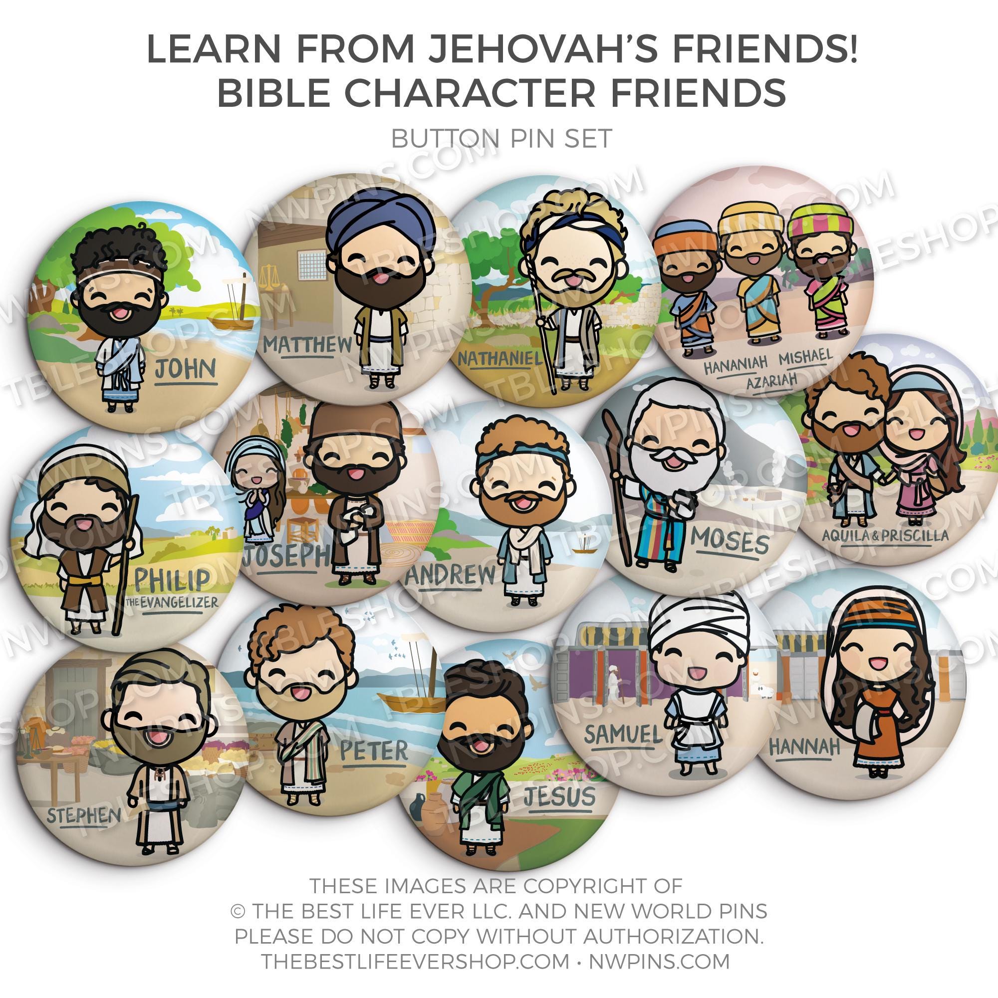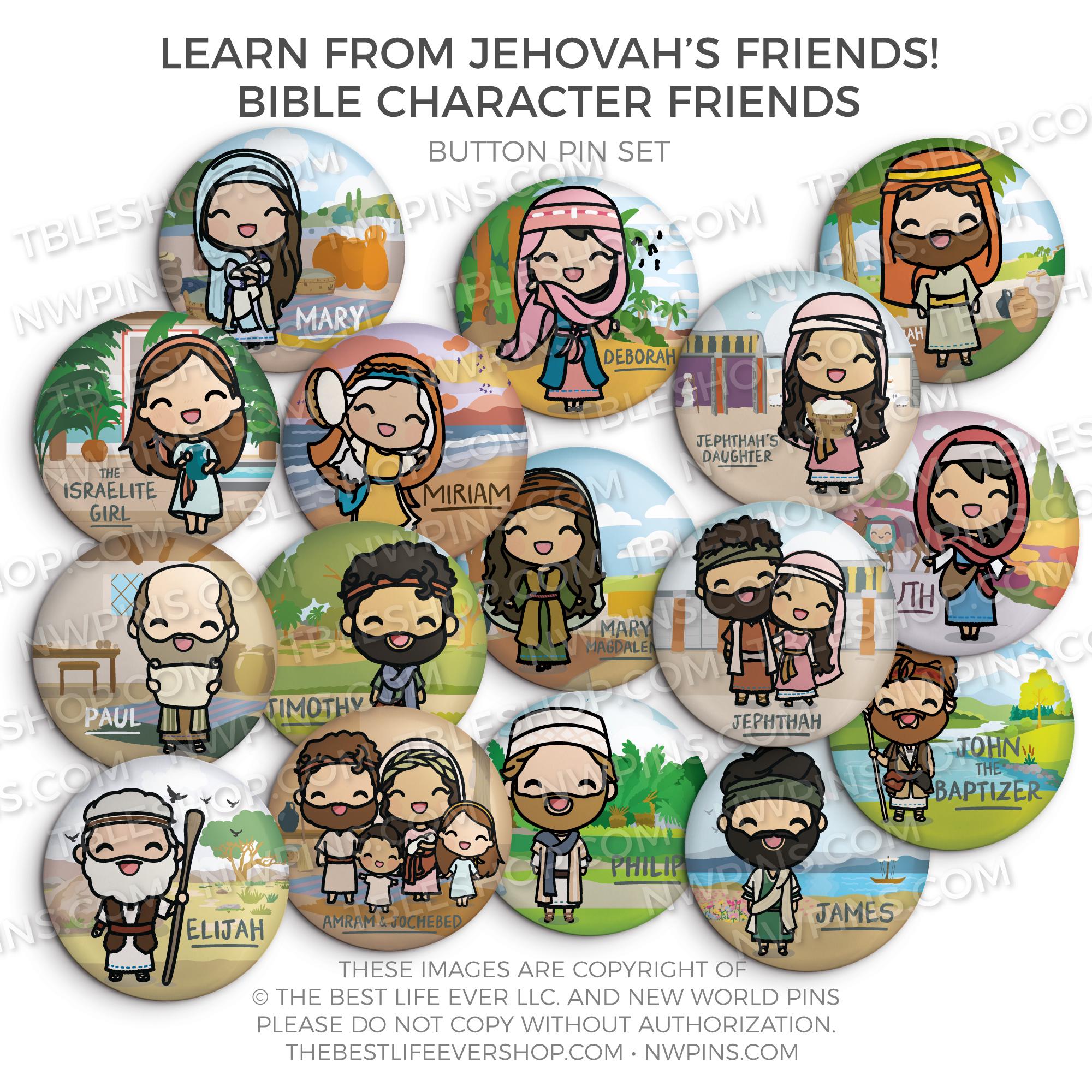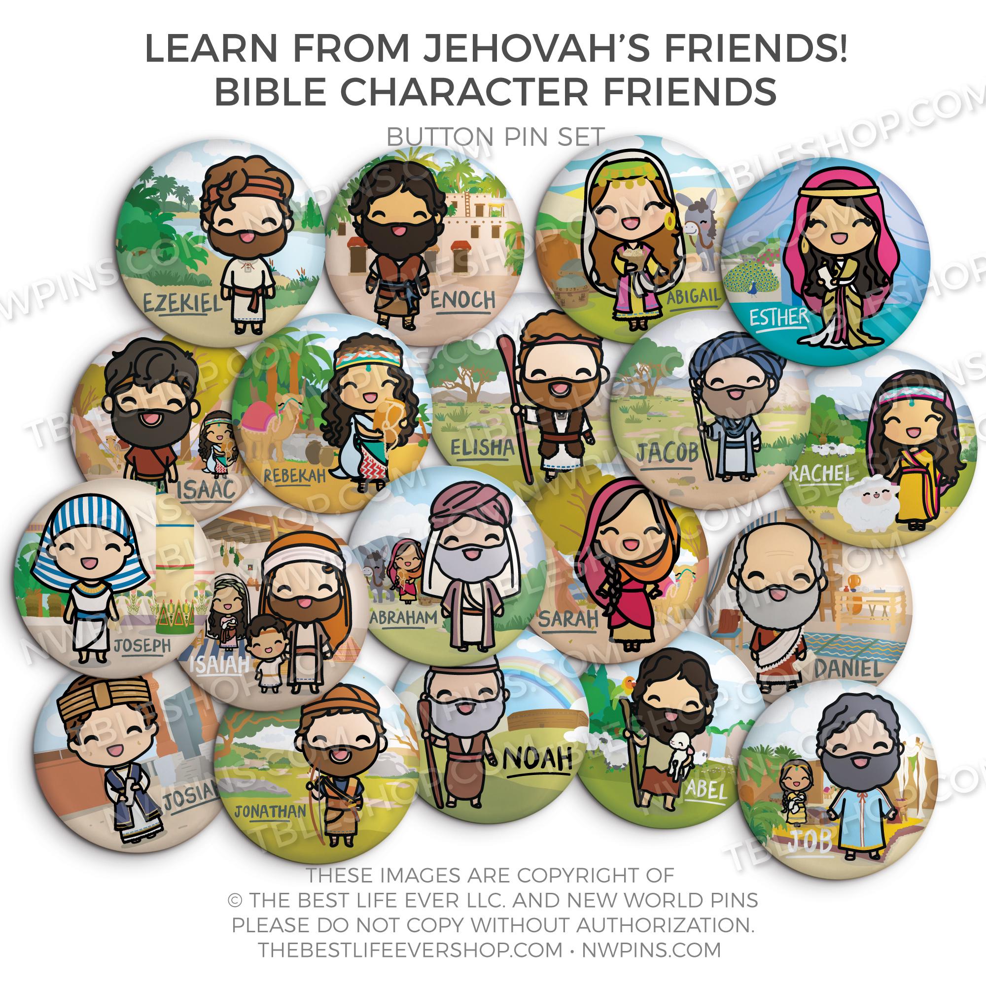 Learn from Jehovah's Friends - Bible Character Friends Button Pin Set